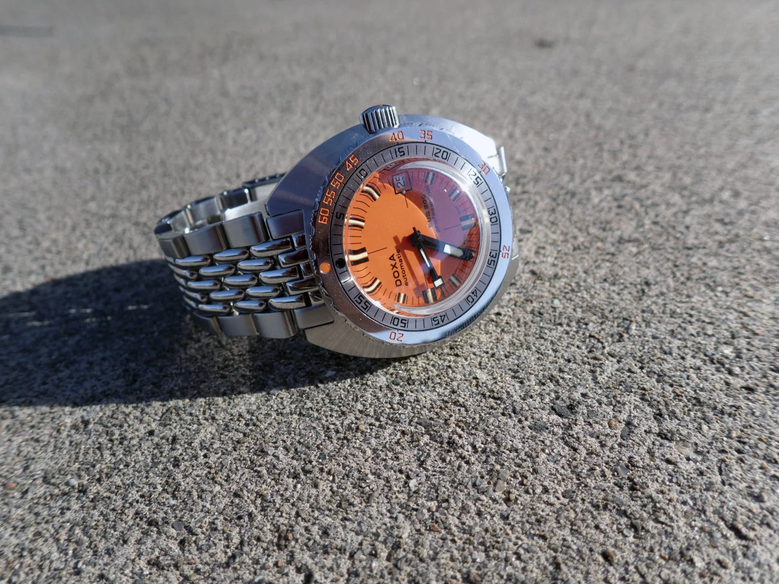 Doxa have added a lineage of new dial colours in addition to the historical colours, in addition we’re now offered a teal blue, a dark blue and my personal favourite, the stark white ‘Whitepearl’ dial.